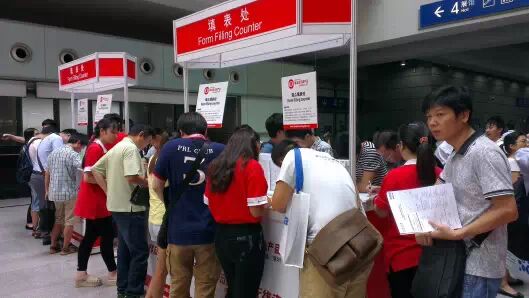 排队,当然得排队。如果您已经预登记,恭喜,专用通道等着您。报上您的预登记号或名字,入场证瞬间到手,